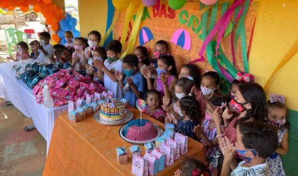 Cada criança recebeu um presente, brincou de pula-pula e deliciou um lanche que foi preparado com muito carinho.