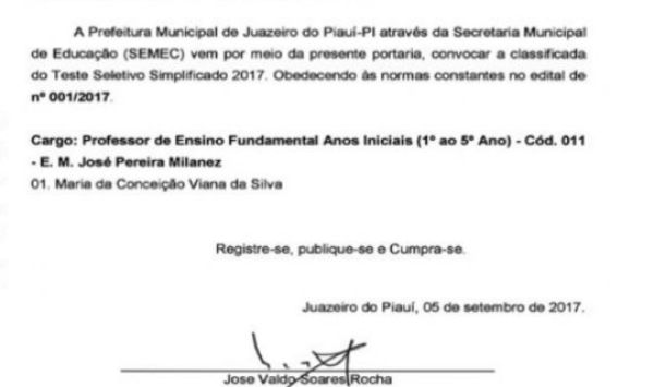 Foi aprovada no Teste Seletivo Simplificado realizado pela prefeitura em abril deste ano