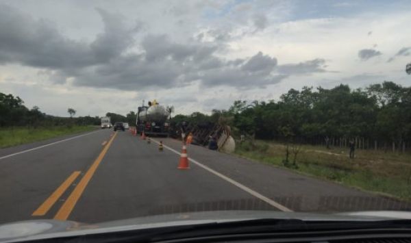 O trânsito está obstruído e fluindo lento. A PRF foi acionada para realizar os procedimentos cabíveis