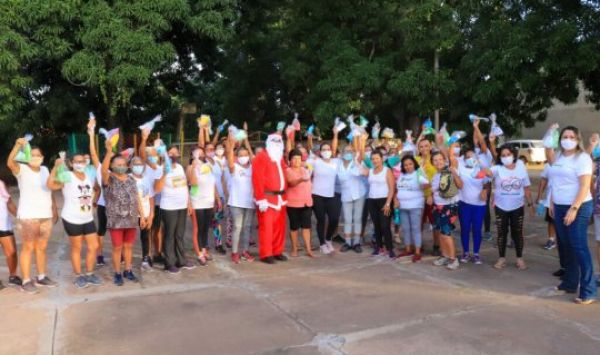 O encerramento das atividades com cerca de 60 idosos atendidos pelo CRAS e I e II, na quadra da Secretaria de Assistência Social.