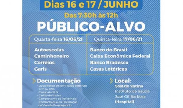 A imunização vai ocorrer de 7:30 às 12h, na sala de vacinas do Instituto de Saúde José Gil Barbosa.