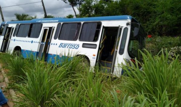 O ônibus perdeu o controle após desviar de uma colisão traseira com uma carreta e quase colidiu frontalmente com um outro ônibus que vinha no sentido contrário