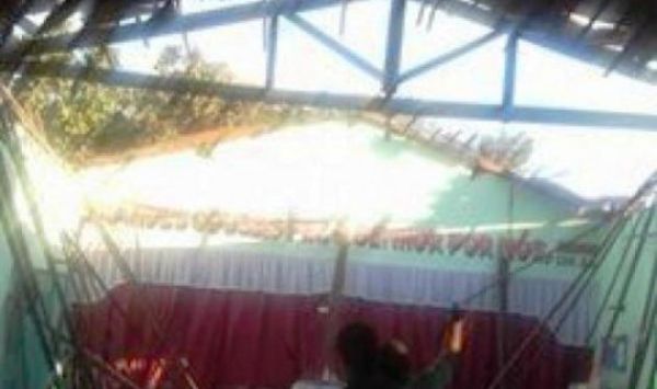 Uma mulher se encontrava no interior da igreja realizando uma faxina para receber os fiéis