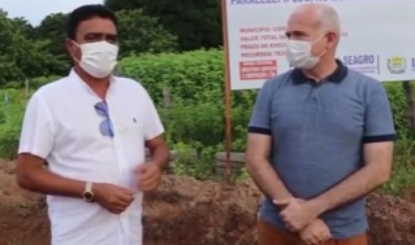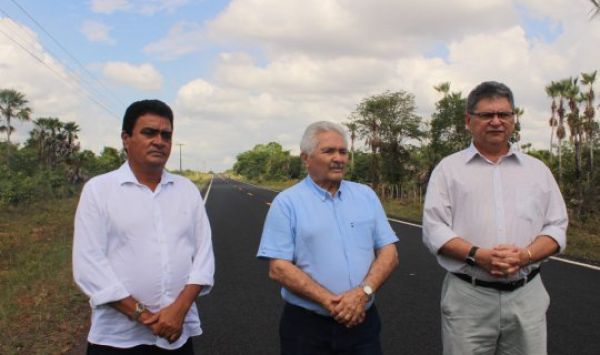 Marcelino Almeida e Elmano Férrer comemoram a conclusão da obra do trecho entre os municípios.