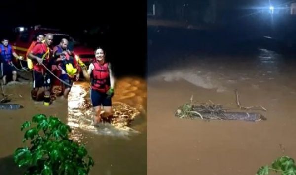 A família composta por três pessoa, um bebê de colo e mais dois cachorros filhotes foram retirados com segurança.