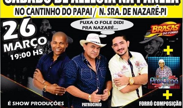 A cidade de Nossa Senhora de Nazaré, confirmou as atrações que irá animar o tradicional Sábado de Aleluia, dia 26 de março, no Continho do Papai Casa de shows na comunidade panela.