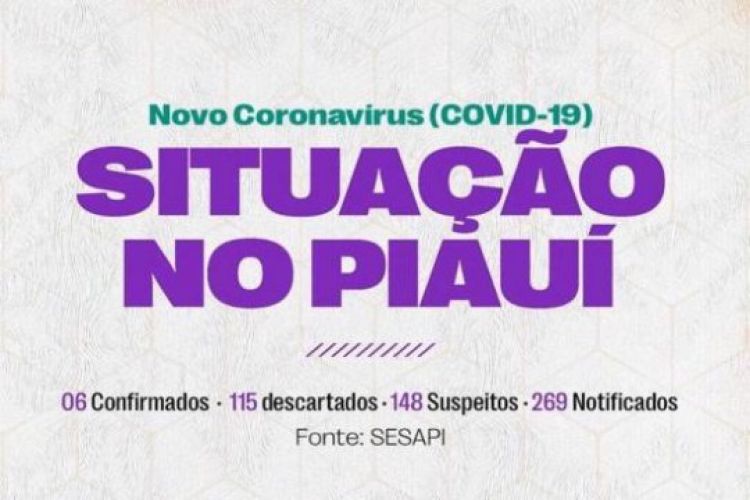 O Governo do Estado do Piauí, por meio da Secretaria de Estado da Saúde, divulgou, na noite desta segunda-feira (23), mais um boletim de atualização sobre os casos suspeitos de coronavírus. Os dados apontam que o Piauí tem um total de seis casos confirmados do novo coronavírus.