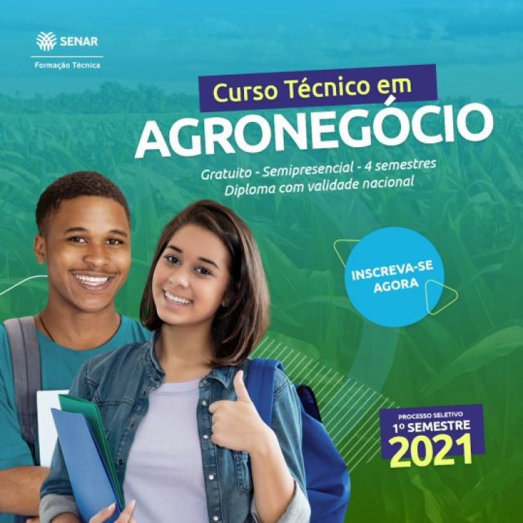 O Serviço Nacional de Aprendizagem Rural (Senar-PI) está com inscrições abertas para o processo seletivo do curso técnico gratuito em Agronegócio, na modalidade a distância.