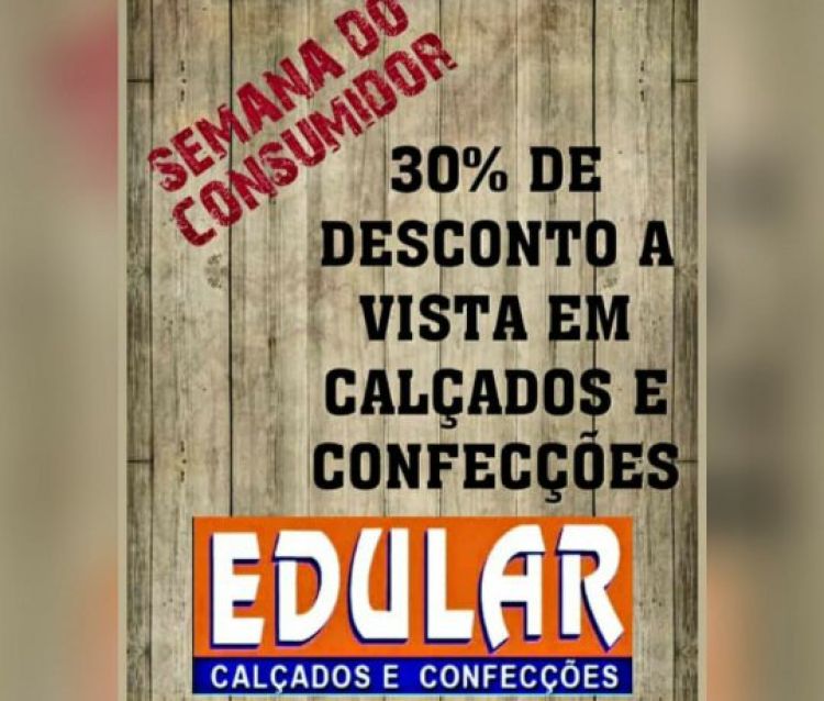 A semana do consumidor nas lojas EDULAR de Campo Maior (PI) está imperdível! Aqui você encontra as melhores promoções tudo em calçados e confecções com até 30% de desconto à vista.