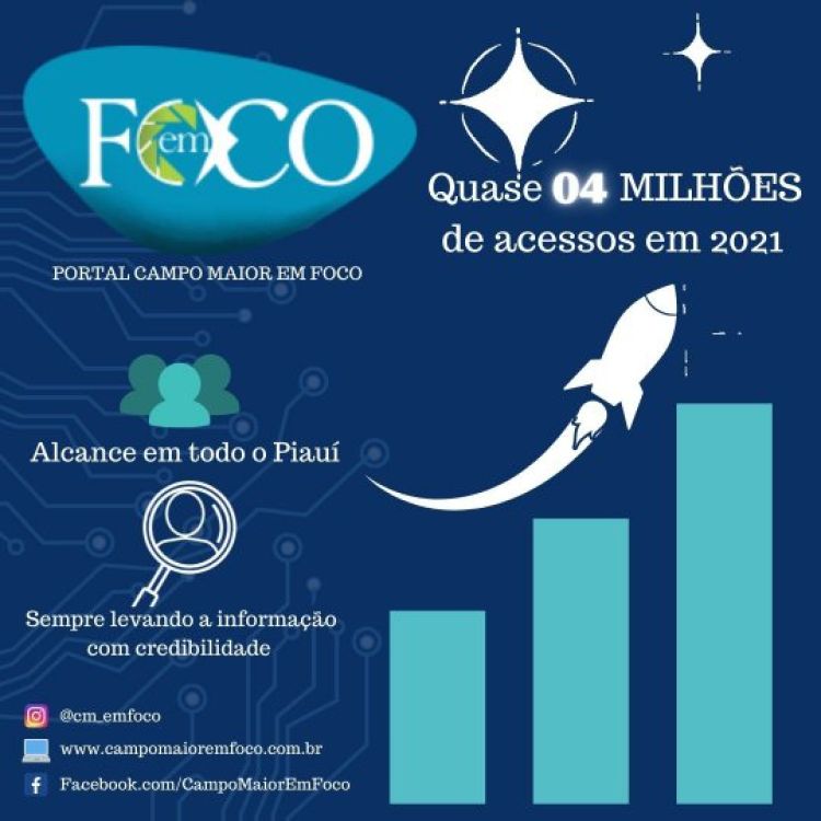 O Portal Campo Maior em Foco atingiu uma marca impressionante de 3.717.270 milhões de acessos no site em 2021, quase 4 milhões de acessos de janeiro a dezembro de 2021.
