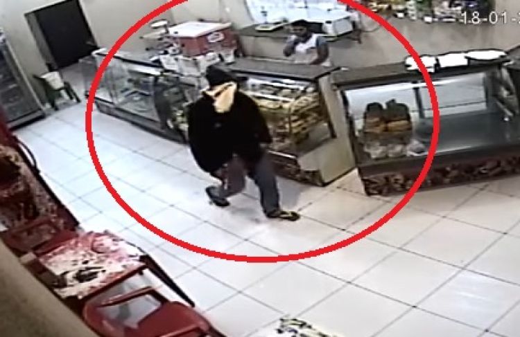 Toda ação foi registrada pela câmara de segurança do estabelecimento, onde mostra o suspeito com rosto coberto entrando no local rendendo a funcionária que estava sozinha, já prestes de fechar. Ele põe a arma na mulher, leva ela para atrás do balcão e exige todo o dinheiro do caixa.