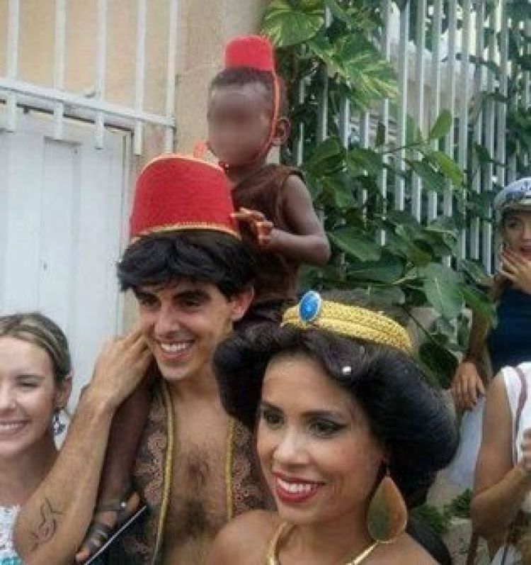 Uma foto que circulou nas redes sociais nesta segunda-feira (8) de carnaval está causando muita comoção no país. Nela, um casal de jovens aparece fantasiado de Aladdin e Jasmine, com o filho nos ombros vestido de Abu, o macaco de estimação e um dos melhores amigos do personagem.Entre os comentários, internautas mostraram-se indignados com a fantasia da criança e acusaram os responsáveis pelo menino de racismo.