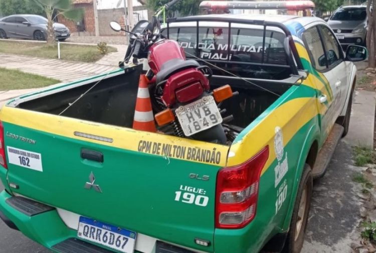Nesta sexta-feira, dia 20 de janeiro, por volta das 9h, uma guarnição de serviço da Polícia Militar de Milton Brandão, na PI 216, proximidades da localidade Açude dos Dandouras, identificou uma motocicleta Honda CG 125 vermelha com uma placa diferente do número do chassi. Após verificação no sistema INFOSEG, constatou-se que a motocicleta havia restrição de roubo/furto.