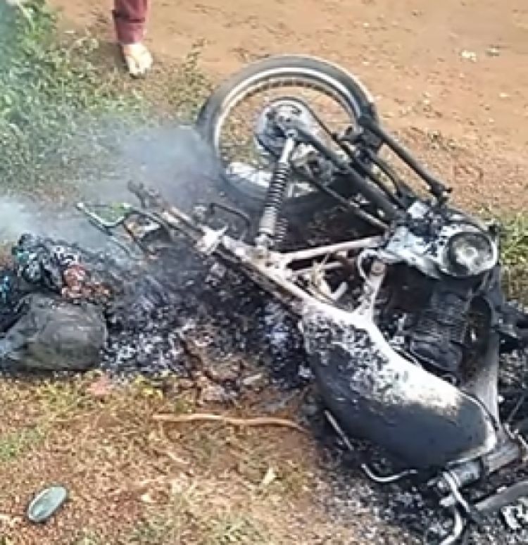 Uma moto pegou fogo na manhã deste domingo (19) após um acidente na estrada que liga o assentamento baixa ao centro da cidade em Sigefredo Pacheco (PI).