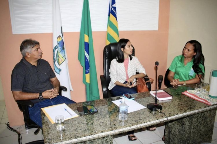 A reunião contou com a presença de Isadora Cortês, coordenadora de Urbanização, e Aracelia Resende, vistoriadora da diretoria fundiária do INTERPI, além de representantes da administração municipal.