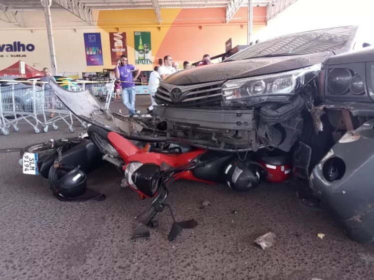 Um motorista de 76 anos sofreu um mal súbito e bateu com o carro em seis veículos, outro carro e cinco motos, na manhã desta sexta-feira (28), no estacionamento de um supermercado na Zona Leste de Teresina.