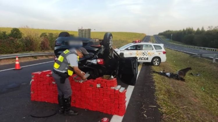Segundo a Polícia Rodoviária, quando a equipe recebeu a ocorrência sobre o acidente envolvendo o veículo, imediatamente se dirigiram ao local. Ao chegar à rodovia, os policiais avistaram o carro da marca Fiat e da cor preta, capotado e com uma grande quantidade de maconha espalhada pela rodovia, e em volta do veículo.