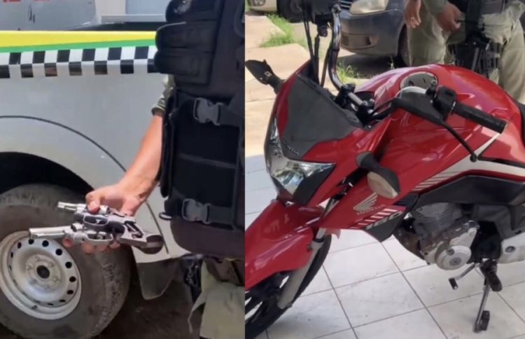 Uma motocicleta tomada de assalto zona rural de Pedro ll, no norte do Piauí, foi recuperada e apreendida no município de Piripiri. Na ação, os policiais também apreenderam três revólveres e uma quantidade de droga, no residencial Petecas.