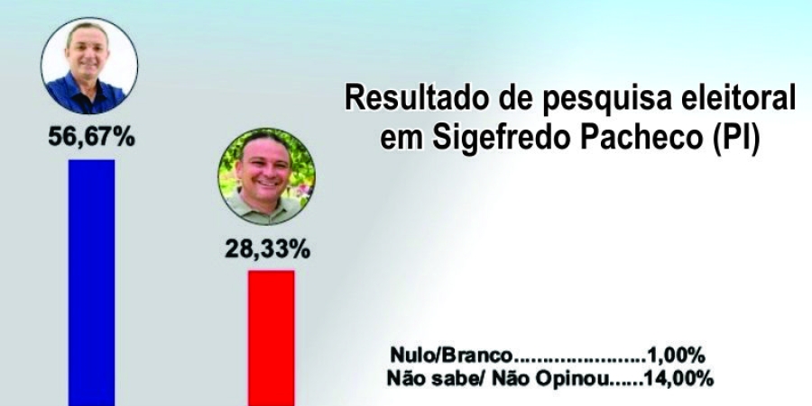 Os números mostram a disputa pela prefeitura de Sigefredo Pacheco, avaliação da gestão municipal e estadual, assim como também a rejeição dos principais pré-candidatos a prefeito no município. O levantamento feito pelo Instituto Credibilidade mostra que o atual prefeito Murilo Bandeira, (PT), tem aprovação de 61,00% da população de Sigefredo Pacheco, o governador Rafael Fonteles (PT) aparece com 69,67% de aprovação.