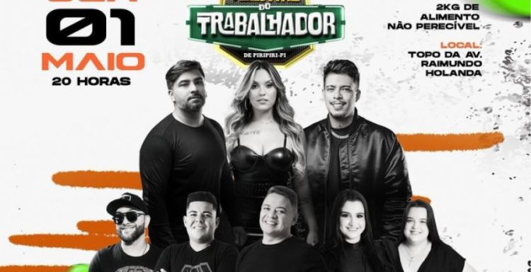 Além das duas atrações citadas, a festa do trabalhador de Piripiri prevê, ainda, as apresentações das bandas Lapada de Primeira, Gustavo Araújo, Chaguinha Desejo, e Farra das Comandantes.