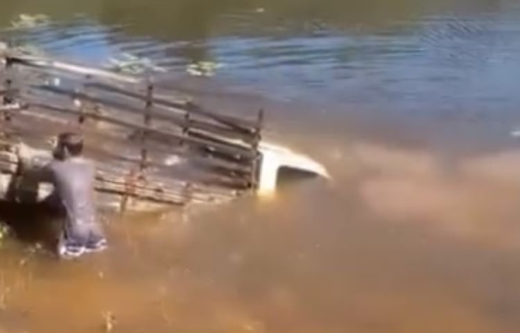 Neste domingo (12), uma caminhonete modelo D20 ficou totalmente submersa após o motorista perder o controle do veículo e cair nas águas. O sinistro aconteceu no açude do assentamento Santo Antônio do Campo Verde, na zona rural de Sigefredo Pacheco, norte do Piauí.