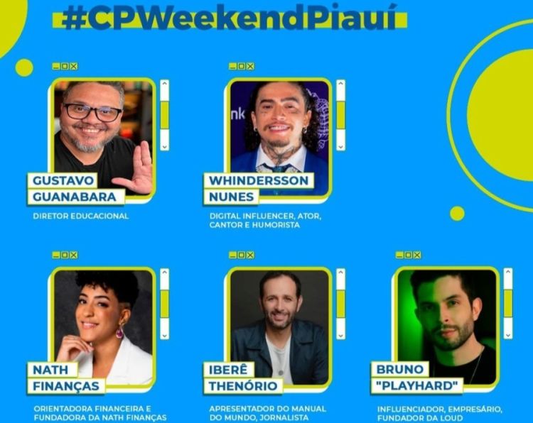O Centro de Convenções de Teresina recebe, entre os dias 29 a 31 de maio, a Campus Party Weekend. O evento tem o apoio do Governo do Piauí e traz nomes como o influenciador digital Whindersson Nunes e Nath Finanças, orientadora financeira, entre os palestrantes.