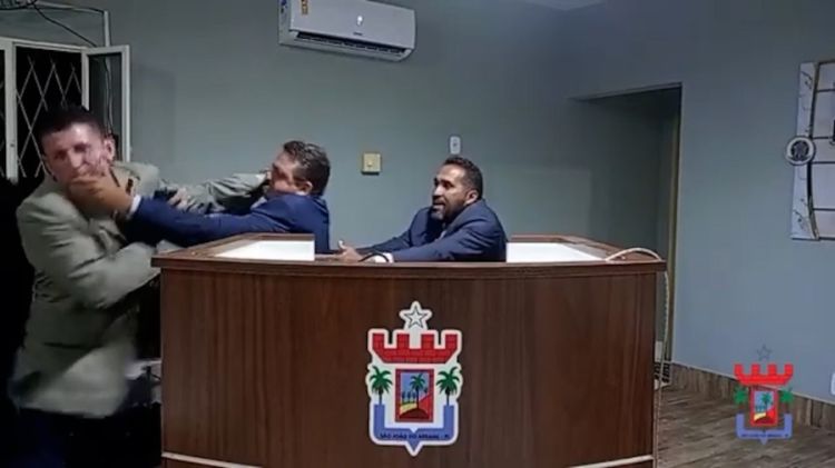 Os parlamentares Cajé Rocha (MDB) e Jurandir Pontes (PT) trocaram ofensas e agressões físicas durante a transmissão ao vivo da sessão ordinária de sexta-feira (13) da Câmara Municipal de São João do Arraial. Opositores na Casa e na disputa das eleições municipais, os vereadores chegaram a usar palavrões e um deles arremessou um copo de vidro contra outro.