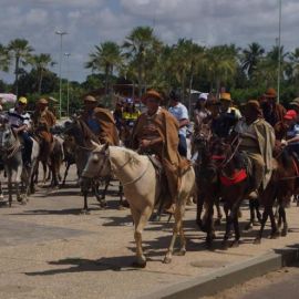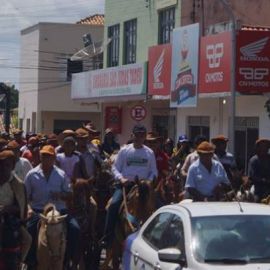 Em seguida a imagem do padroeiro foi levada em cavalgada pelas ruas da cidade até o Parque malagueta para a tradicional vaquejada do festejo de Campo Maior, que é feita com a participação de vaqueiros da região. Por lá também teve o almoço do vaqueiro.