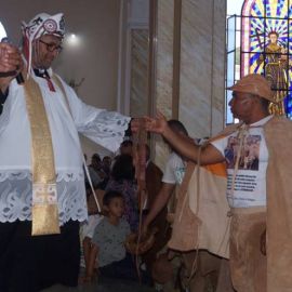 Desde as primeiras horas deste sábado, vaqueiros de várias cidades da região se reúnem, iniciando com um café da manhã oferecido aos vaqueiros. Em seguida um dos momentos marcantes que foi a entrada da imagem de Santo Antonio na Igreja, carregado pelos vaqueiros. Durante a celebração, o Padre Jerônimo, da Área Pastoral de Jatobá do Piauí emocionou mais uma vez com orações cantadas e aboios. Os vaqueiros também deixaram mensagens e recitaram versos e poemas.