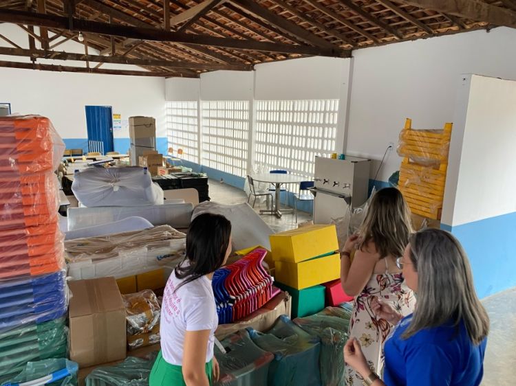 A secretária Elisangela Gomes esteve na creche para receber o bem que vai proporcionar mais qualidade no ensino infantil no município.