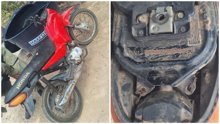Segundo o Capitão Frazão, comandante da operação, policiais abordaram um motociclista identificado como Carlos Alberto Silva de Oliveira e constataram sinais identificadores raspados no veículo.