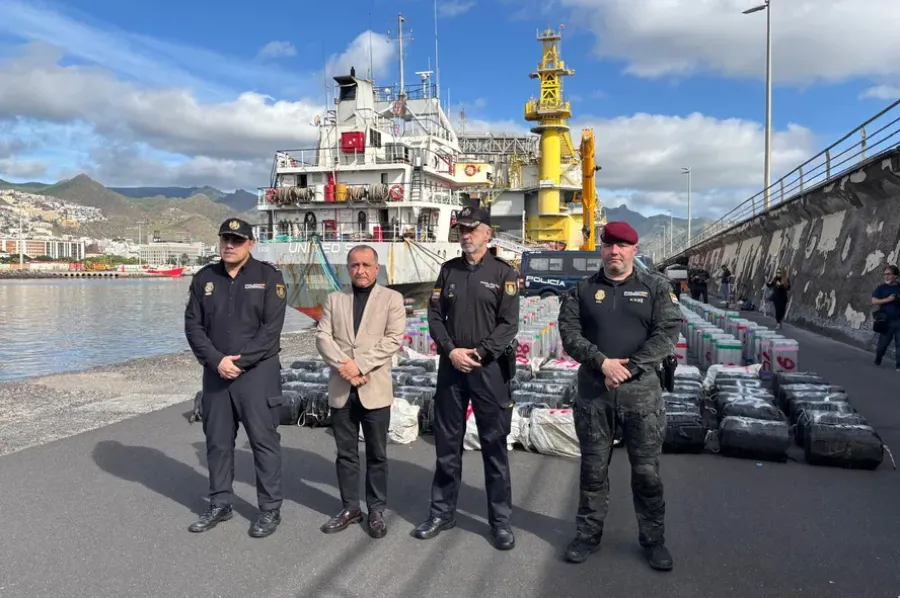 Segundo a Polícia Nacional, trata-se da maior apreensão de cocaína já realizada em alto-mar pela corporação. O navio, de bandeira camaronesa, foi abordado na semana passada por agentes do Grupo Especial de Operações e, após ficar sem combustível, precisou ser rebocado até as Ilhas Canárias.