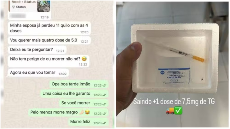 "É fundamental que seja utilizada a medicação real, de fato, que foi fiscalizada, que foi aprovada, que é vendida na farmácia. Esse mercado paralelo que se desenvolveu é extremamente perigoso, a gente não sabe que tipo de produto dessas seringas que são vendidas às vezes pro um vizinho, grupo de WhatsApp, salão de beleza. Então realmente é extremamente perigoso, primeiro porque a gente não sabe do se trata, e segundo que mesmo que seja uma medicação que foi trazida [legalmente] a gente não sabe como foi armazenada", alerta.