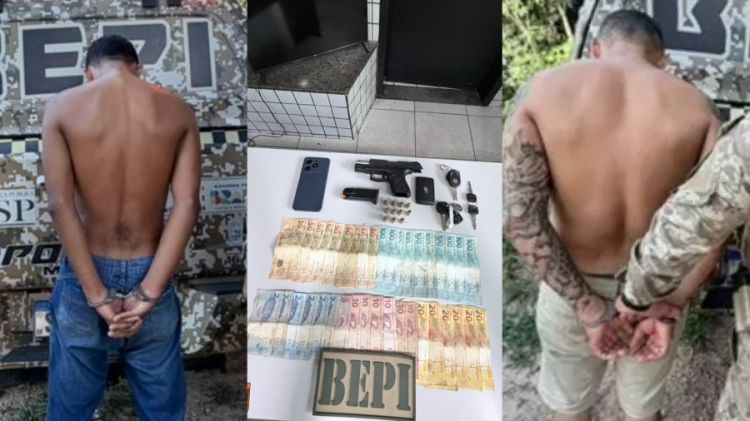 Ainda de acordo com a Polícia Militar, os dois presos, identificados pelas iniciais A.R.C.O. e E.S.C., possuíam mandados de prisão em aberto, sendo um por roubo e outro por homicídio.