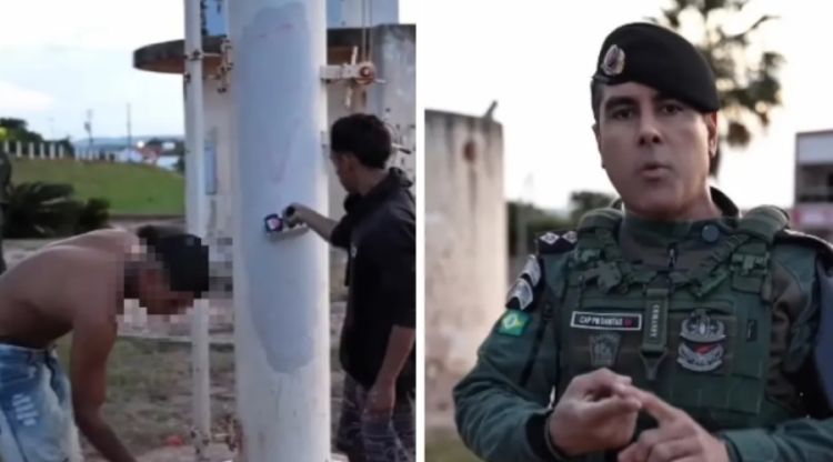 “Esse é um dos chefes do Comando Vermelho no município, vulgo VN, que está querendo demonstrar força na cidade e causar terror psicológico na população, dizendo que o crime compensa e utilizando menores para fazer pichações”, afirmou o capitão no vídeo.