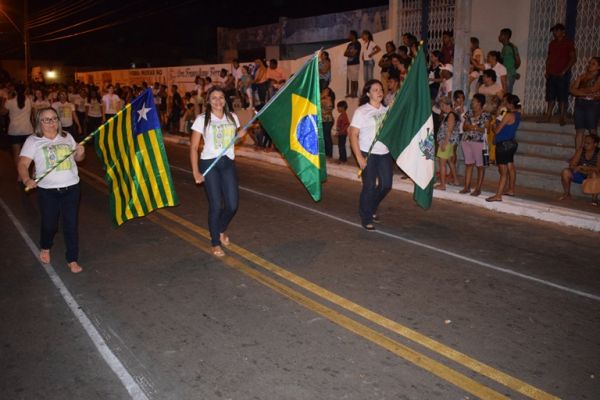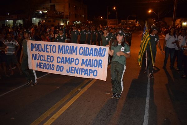 A Banda de Música Municipal Honório Bona abriu o desfile com o hino do Brasil. Logo em seguida foi à vez do hino de Campo Maior ser executado pela Orquestra Sanfônica Dom Abel, composta por alunos do Lar da Criança.