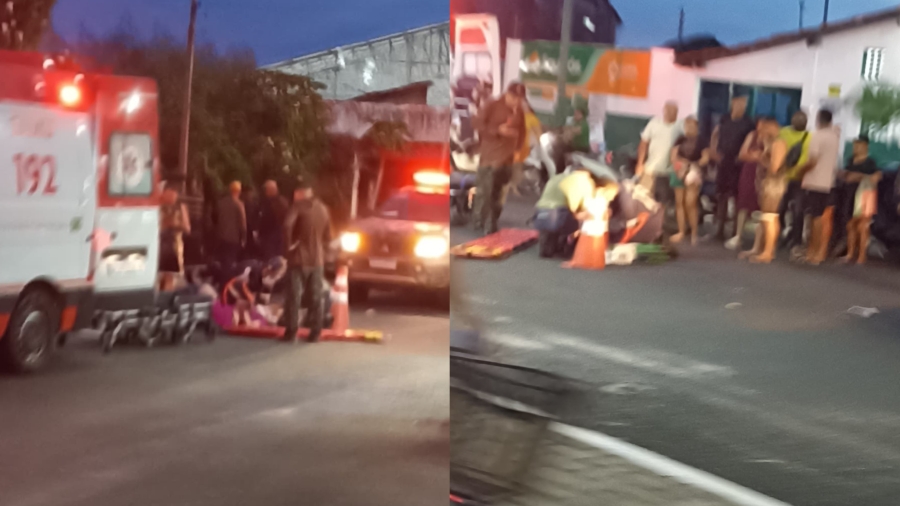 Com o impacto, a mulher foi arremessada ao chão e o motociclista caiu do veículo. Duas ambulâncias do Serviço de Atendimento Móvel de Urgência (Samu) foram acionadas para socorrer as vítimas.