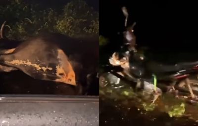 Na noite deste domingo (12), uma motociclista identificada como Eliane e uma criança ficaram feridos após uma colisão com uma vaca na localidade Amorosa, na PI-323, zona rural de Sigefredo Pacheco.