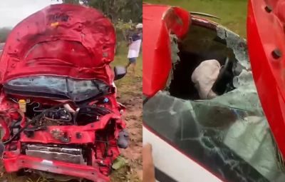Um veículo ficou destruído após colidir com animais soltos na pista na noite deste sábado (18). O acidente ocorreu por volta das 21h, na rodovia PI-223, na altura da localidade Bom Passar, no município de Beneditinos, norte do Piauí.