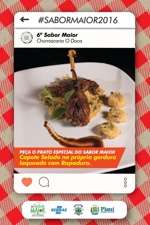 A Churrascaria O Doca, preparou o, Capote Selado na própria gordura laqueado com Rapadura, A Tocca do Lanche, leva ao concurso o X – Capitão de Campos.