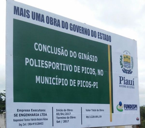 A Fundação dos Esportes do Piauí (FUNDESPI) retomou nesta segunda-feira (03) a construção de um Ginásio Poliesportivo no município de Picos (PI). A obra será executada pela S.E. Engenharia LTDA. O valor total do contrato é de R$ 3.229.681,59, recursos oriundos do tesouro estadual.