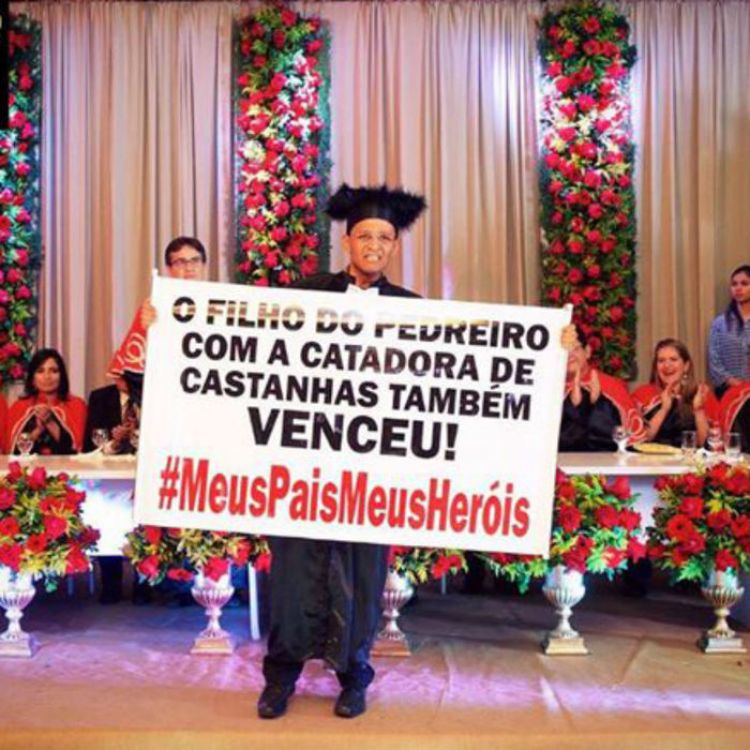 Uma foto roubou a cena nas redes sociais no final de semana, ganhando muitos likes e compartilhamentos. O formando em Direito, Ismael Silva, 24 anos, fez uma homenagem emocionante aos pais durante a solenidade de colação de grau. Ele exibiu um banner que dizia “O filho do pedreiro com a catadora de castanhas também venceu!#Meus Pais Meus Heróis”. Em poucos minutos, a imagem ganhou as redes sociais, emocionando não só os familiares de Ismael, mas todos os teresineses. A história de Ismael é inspiradora e mostra que a educação pode mudar destinos e realizar sonhos.