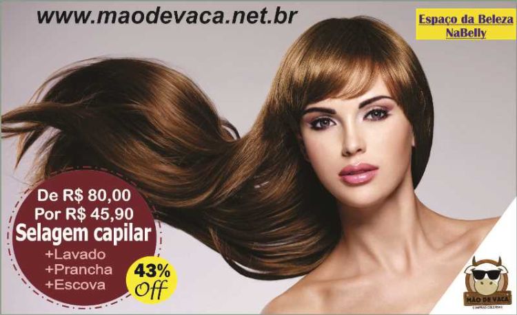 Você acessa agora o site www.maodevaca.net.br e compra um cupom promocional que equivale uma selagem capilar com 43% de desconto. Isso mesmo! A selagem capilar que custa R$ 80 reais sairá por apenas R$ 45,90. Os clientes podem comprar até três cupons por CPF e devem ter acima de 15 anos de idade para fazer o procedimento.