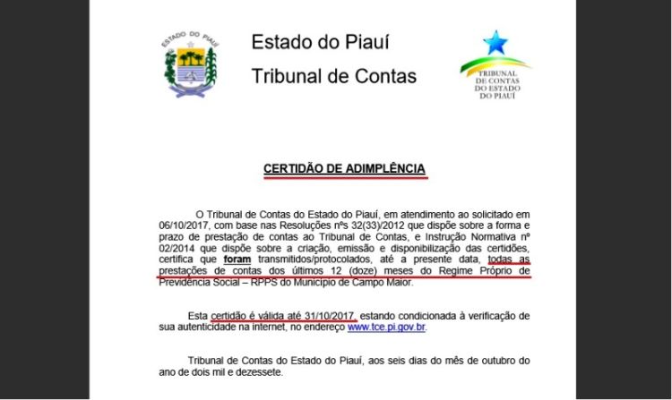 No final da tarde desta quinta-feira (05) o Tribunal de Contas do Estado do Piauí (TCE), divulgou uma lista de quinze municípios que teriam suas contas bloqueadas por atraso no pagamento de parcelamentos de dívidas do RPPS (Regime Próprio de Previdência Social), entre eles Campo Maior (PI).
