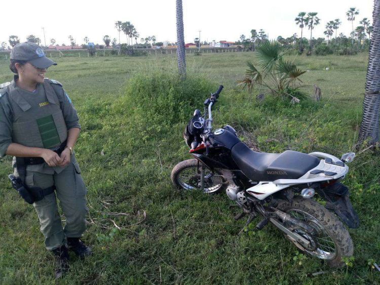 Acionada ainda na noite desta quarta, a polícia militar iniciou as diligências durante a madrugada e todo o dia desta quinta-feira, onde puderam encontrar a motocicleta em uma região afastada do centro da cidade no bairro Matadouro.