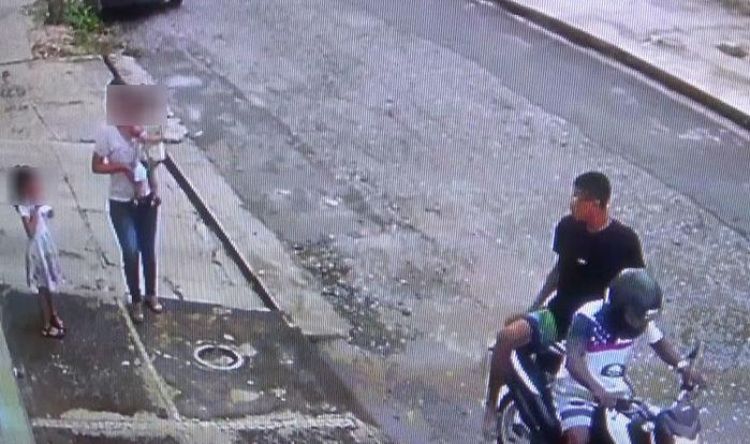 Nesta segunda-feira (09/04), câmeras de segurança de uma residência flagraram o exato momento em que uma mulher com duas crianças pequenas é assaltada na rua Coronel Costa Araújo, no bairro de Fátima, zona Leste de Teresina. Nas imagens é possível ver que os criminosos passam, observam a vítima com a criança andando e outra no colo, resolvem retornar e praticam o assalto.