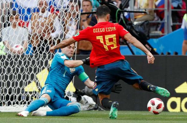 Logo no começo da primeira etapa, o zagueiro Ignashevich marcava Sérgio Ramos num cruzamento para a área e acabou marcando contra a sua própria meta. Ainda no primeiro tempo, Piqué acabou vacilando e batendo a mão na bola dentro da área. A arbitragem assinalou o pênalti e Dzyuba empatou a partida, resultado que persistiu até o final dos 120 minutos.