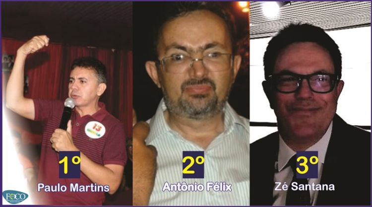 Baseado na apuração do Tribunal Regional Eleitoral, o Em Foco fez um levantamento que aponta os três candidatos a Deputados Estaduais mais votados na região. O ranking traz em primeiro lugar o ex-prefeito de Campo Maior, Paulo Martins (PT), em segundo aparece o ex-deputado Antônio Félix (PTC) e em terceiro o Deputado Estadual Zé Santana (MDB).