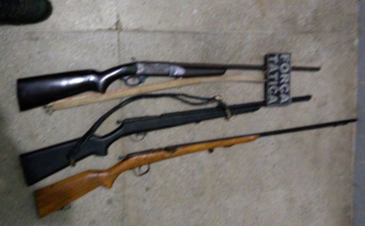 A Força Tática foi até o local indicado e, após realizar abordagem nos indivíduos suspeitos, os mesmos informaram que mantinham sobre suas posses 03 espingardas, sendo uma marca CBC calibre 36; e 2 de fabricação artesanal.