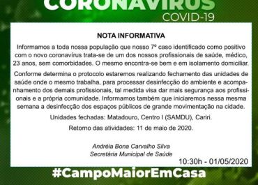 Com o sétimo caso de coronavírus em Campo Maior, o prefeito voltou a apelar para que a população mantenha o isolamento social.